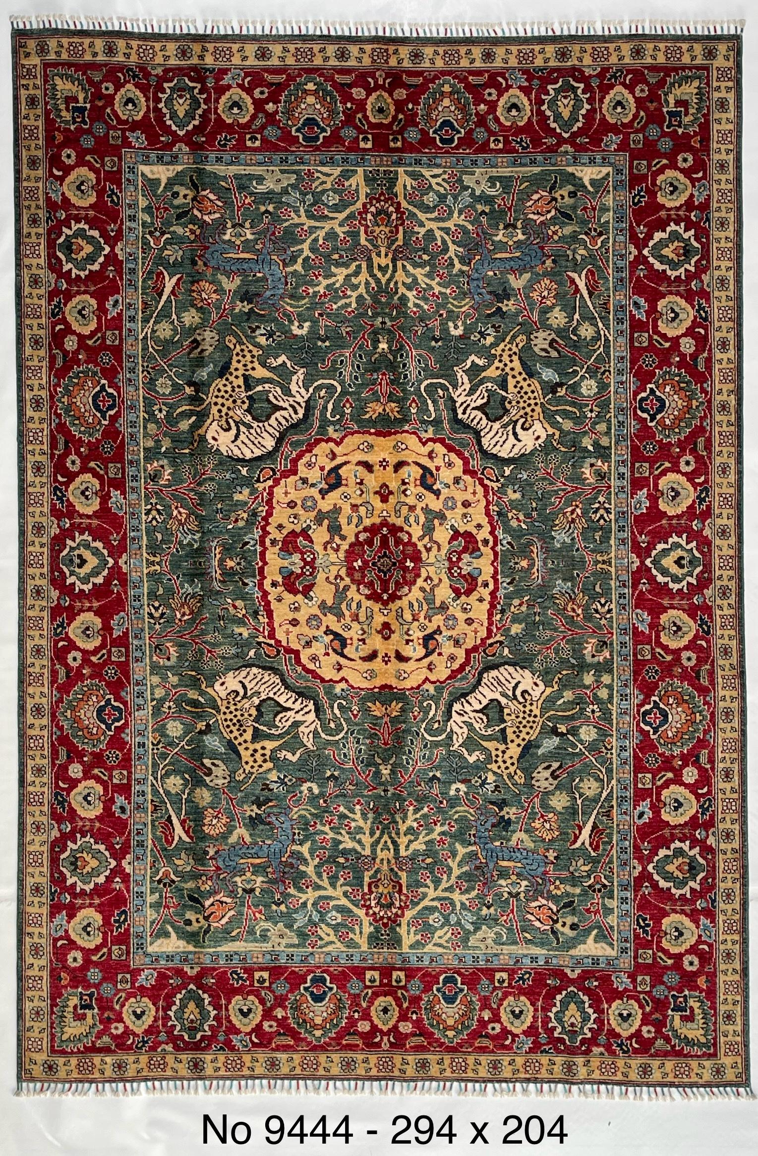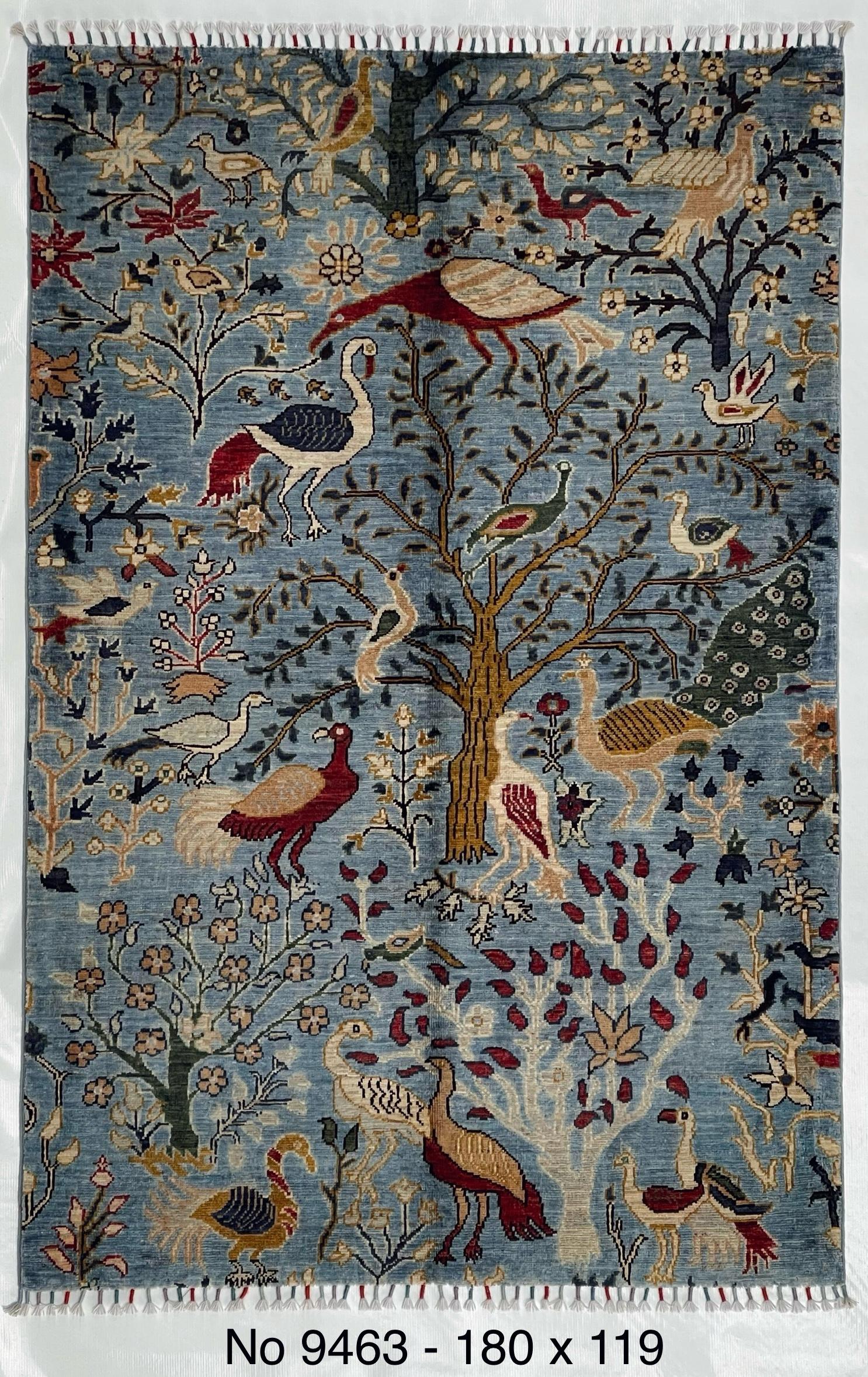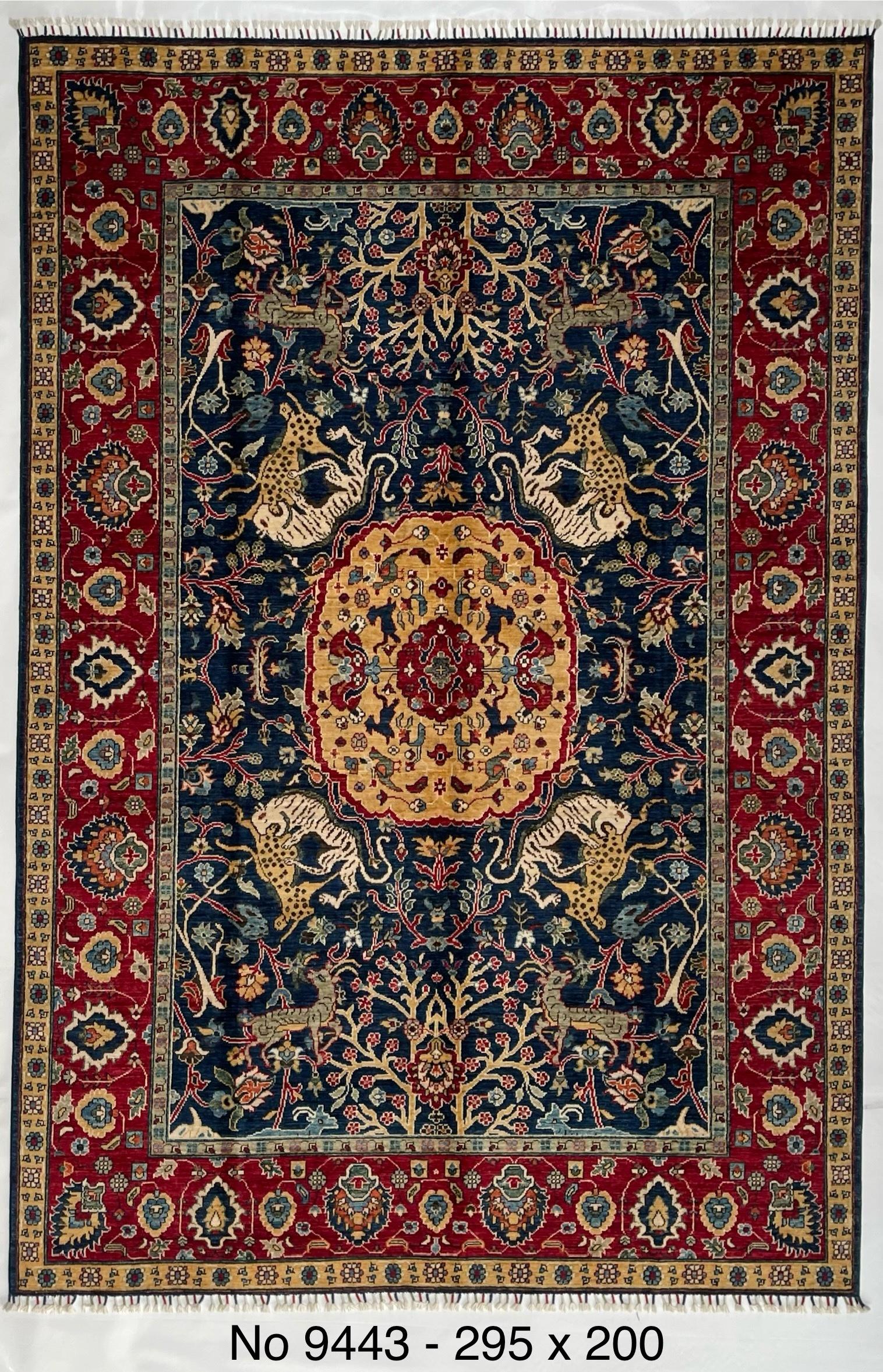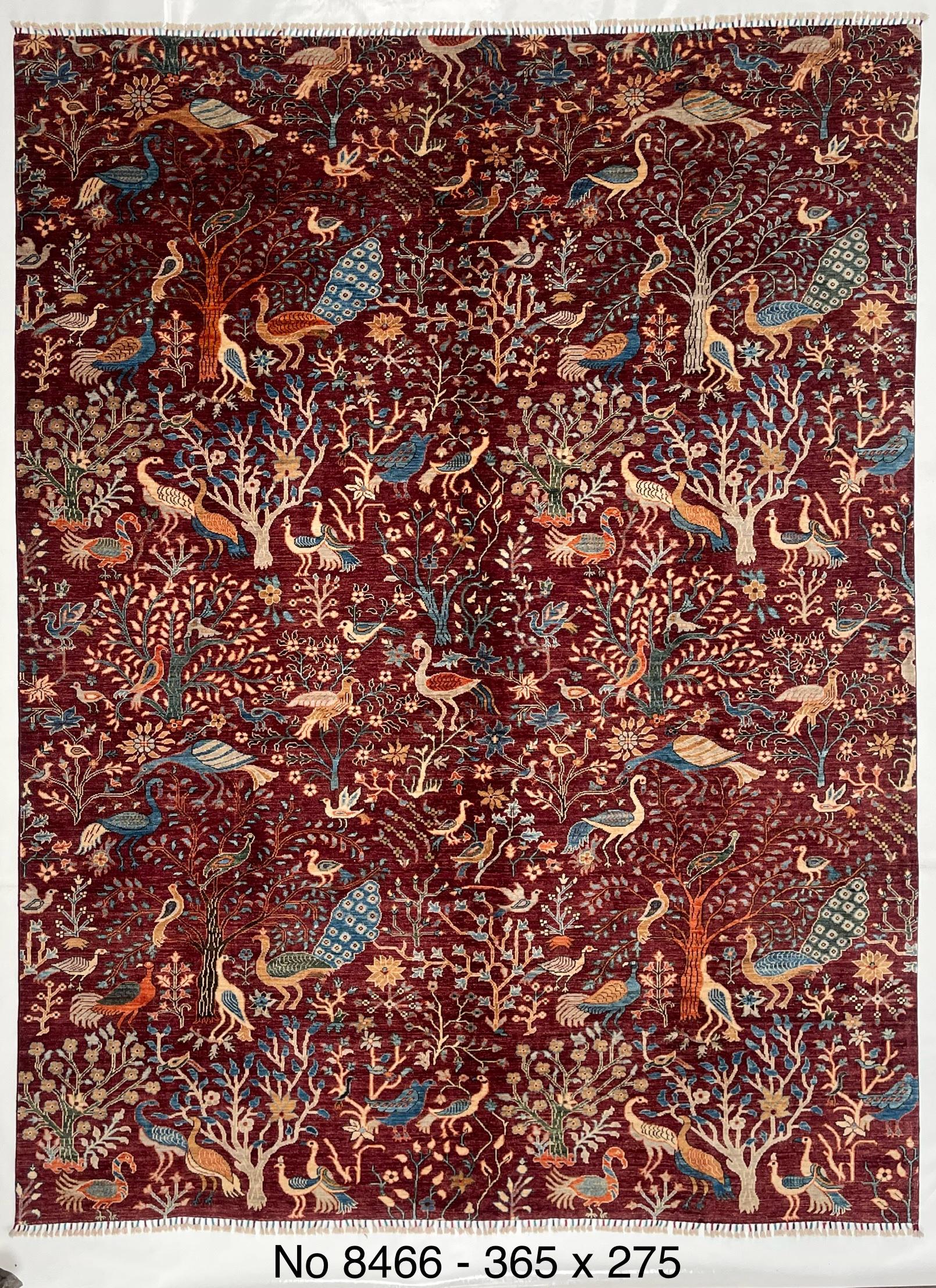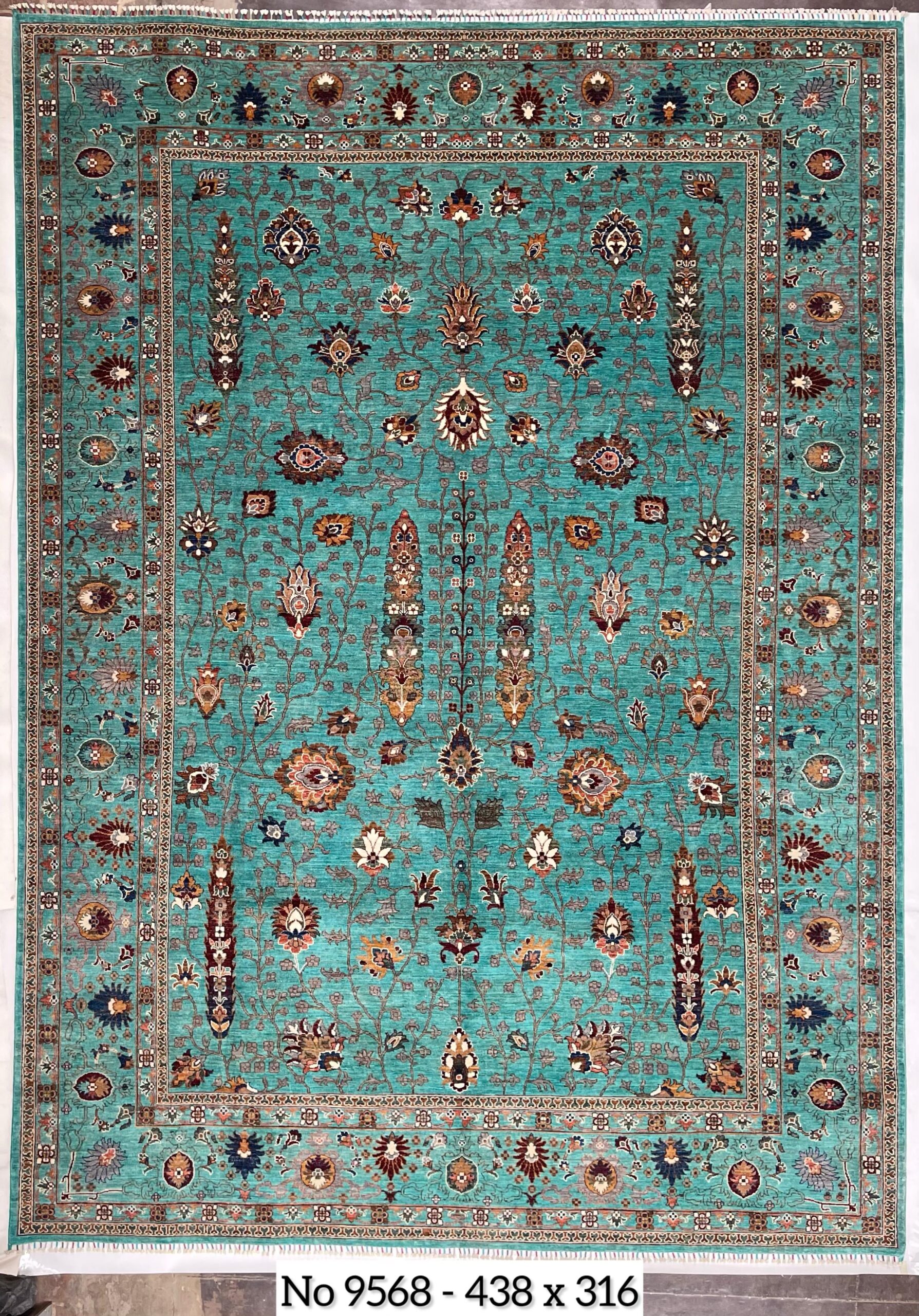 Khorjin rugs are primarily hand-knotted rugs reflecting distinctively tribal and nomadic life. The word ‘Khorjin’ itself comes from Persian and refers to a double saddlebag used by monadic tribes. Khorjin rugs evolved from these practical bags and were eventually woven in the style of the khorjin bag faces. Its design often reflects the two sides of the original saddlebag, though the designs are predominantly geometric, featuring a rich vocabulary of tribal motifs. Typically woven with hand-spun wool, bright and contrasting colors characterize Khorjin rugs and often lack a distinct, elaborate border system. They are valued for their authenticity, the artistry of their geometric designs, and the quality of their handcraftsmanship.