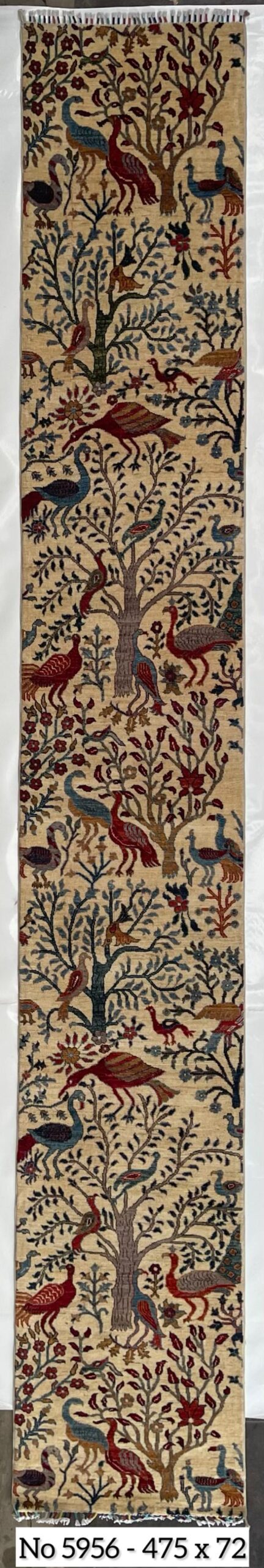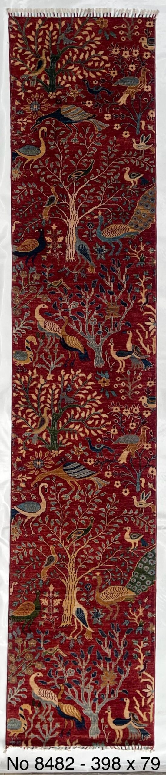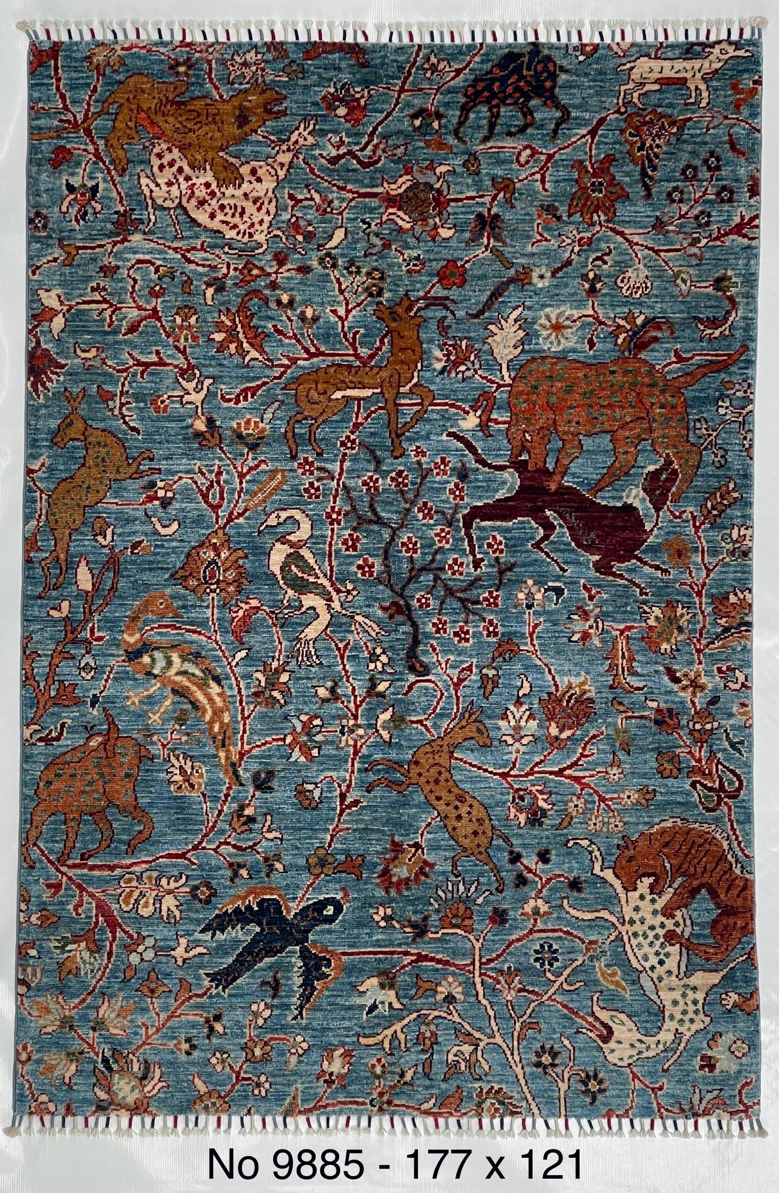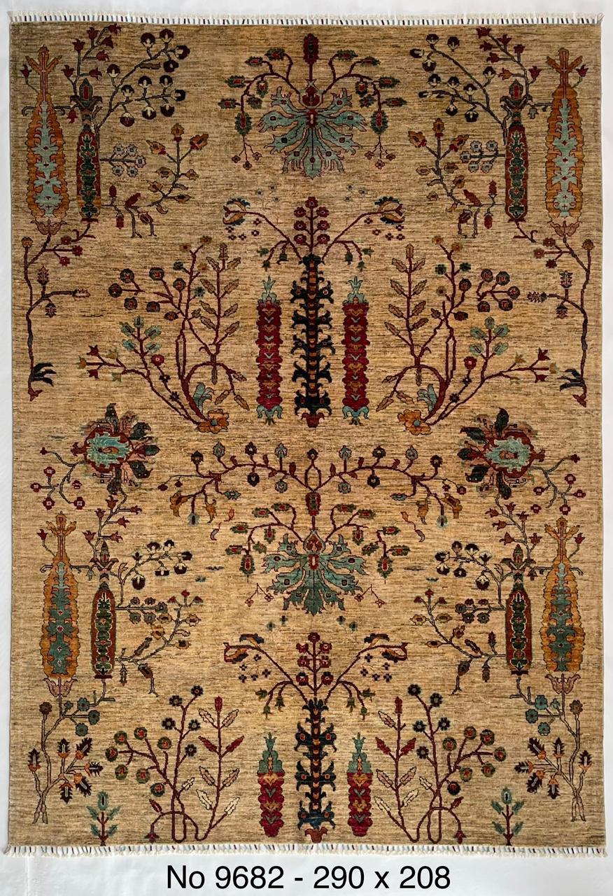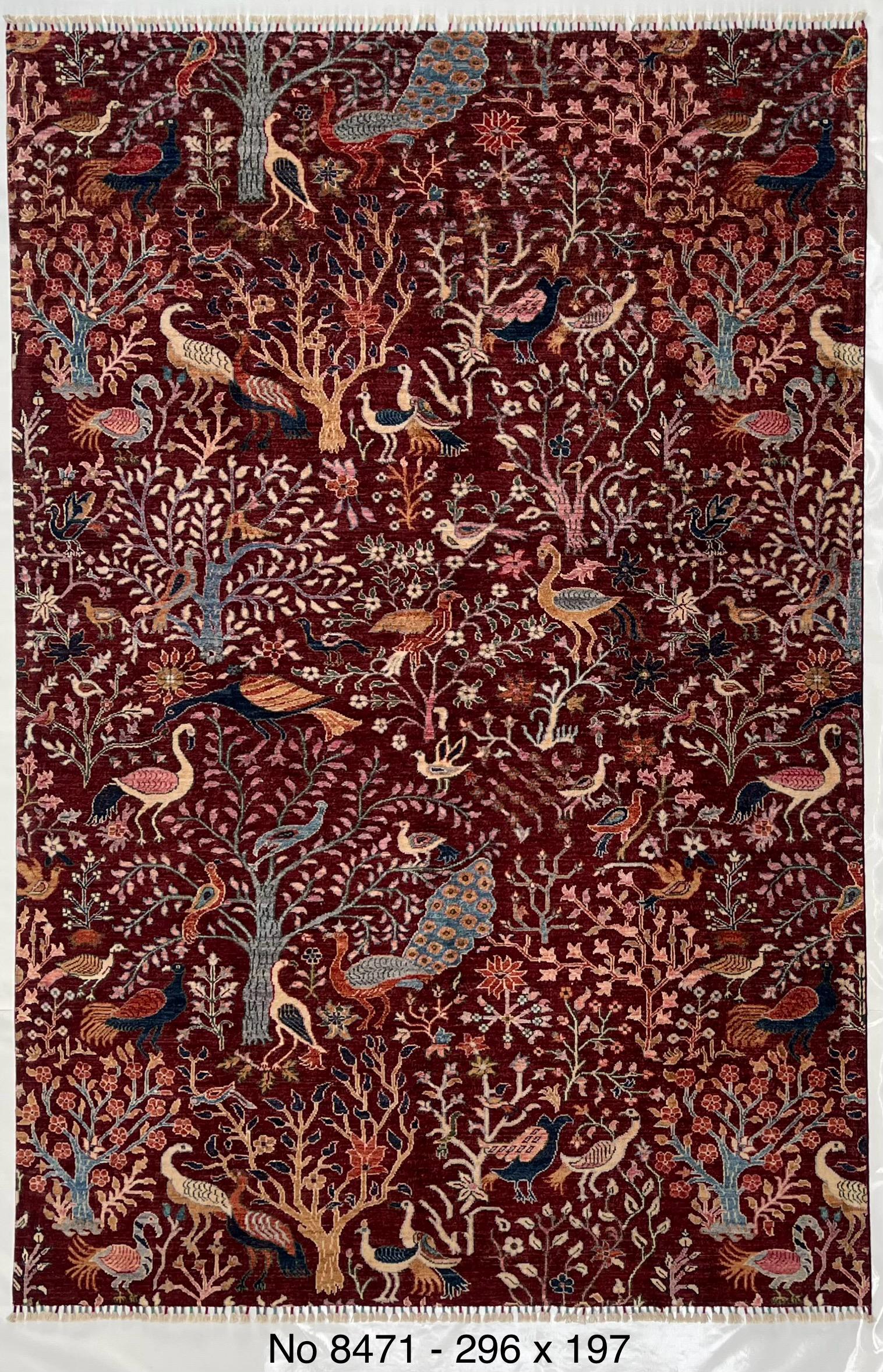 Khorjin rugs are primarily hand-knotted rugs reflecting distinctively tribal and nomadic life. The word ‘Khorjin’ itself comes from Persian and refers to a double saddlebag used by monadic tribes. Khorjin rugs evolved from these practical bags and were eventually woven in the style of the khorjin bag faces. Its design often reflects the two sides of the original saddlebag, though the designs are predominantly geometric, featuring a rich vocabulary of tribal motifs. Typically woven with hand-spun wool, bright and contrasting colors characterize Khorjin rugs and often lack a distinct, elaborate border system. They are valued for their authenticity, the artistry of their geometric designs, and the quality of their handcraftsmanship.