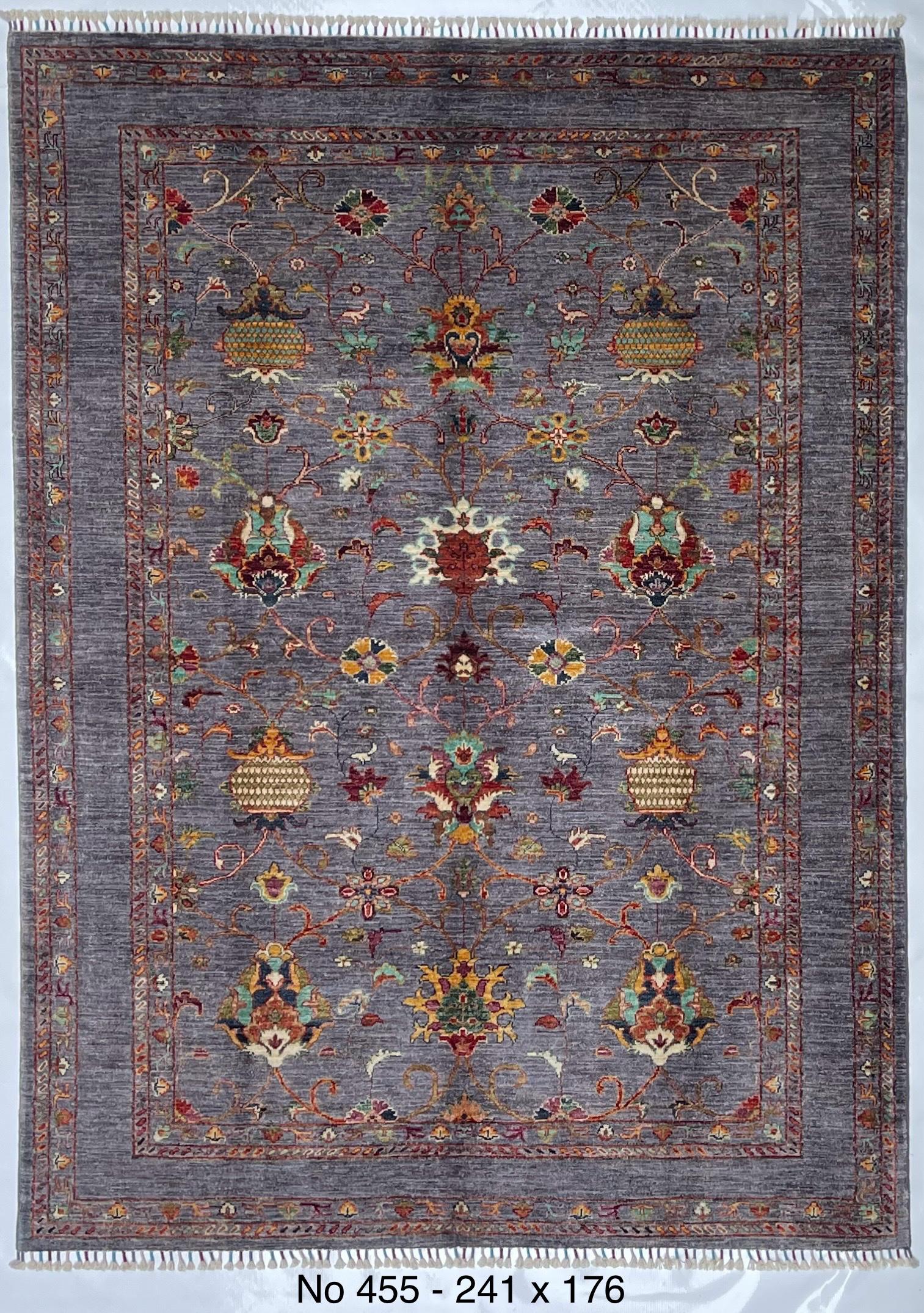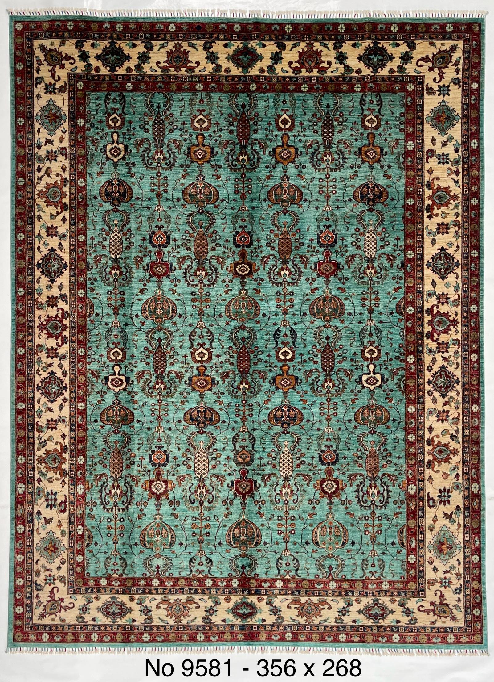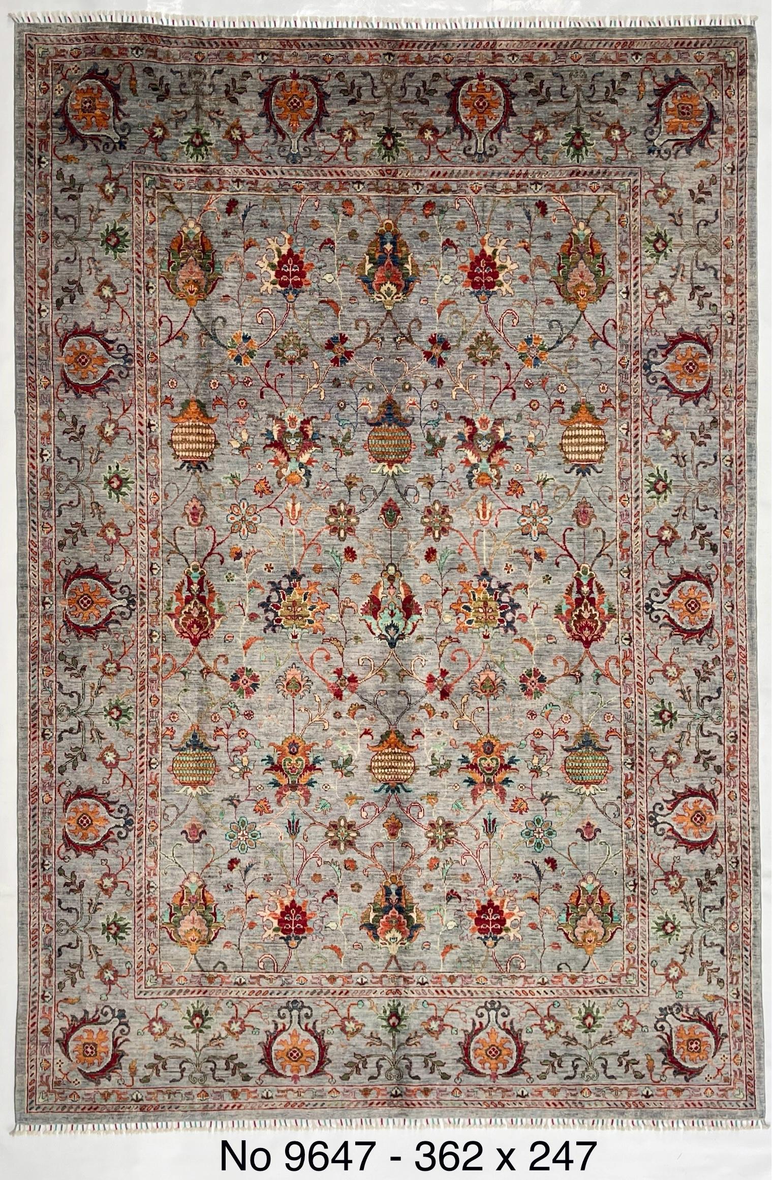 A Sultani rug is a type of hand-knotted rug that originated from the region of Sultanabad (now Arak) in Persia, Iran. Modern Sultani rugs are mainly produced in Afghanistan but draw inspiration from 19th-century Persian Sultanabad designs. These rugs are known for their grand, all-over floral patterns with curvilinear designs. They often feature muted and softer color palettes. Sultani rugs are made with high-quality hand-spun wool, often from the Ghazni region. The name ‘Sultani’, meaning ‘of the Sultan’ or ‘royal’ reflects the grandeur and elegance associated with these designs.